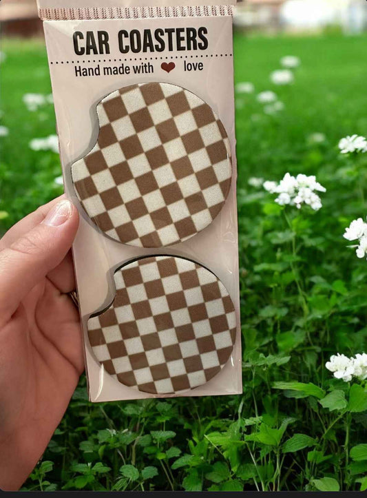 Brown Checkered Car Coasters